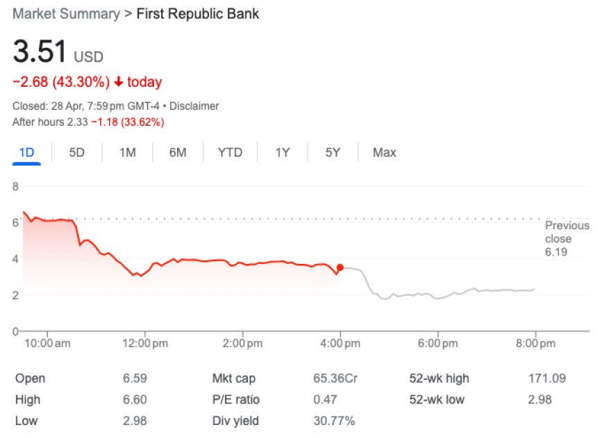 If a buyer for First Republic is not found, its potential collapse could lead to a run on the bank. The FDIC has already stepped in to guarantee all deposits in the wake of Silicon Valley Bank and Signature Bank's failures. In the US, the FDIC insures deposits up to $250,000.